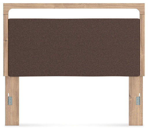 | /The natural wood tones and clean lines of this upholstered headboard echo your easygoing style sensibilities. With a warm finish and replicated oak...
