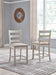 This upholstered bar stool invites you to raise the bar on small space living. An inspired choice for coastal chic or modern farmhouse settings, this comfortably cushioned bar stool with classic ladderback styling sports a grayish white finish with rub through effect for timeworn appeal.
