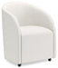This fully upholstered desk chair makes a lasting impression in a simply stunning way. Its magnificent curves are enhanced with a neutral boucle upholstery thatโs so pleasing to the eye. This bucket chair is the piece youโve been looking for to elevate your contemporary home office. Plus, itโs set on casters so itโs easy to move around.