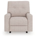 Sincere in its styling, this recliner marries classic function with modern design elements for truly transitional appeal. Its track arms lend a contemporary vibe, while easy pull tab reclining ups the comfort level. And with the recliner's goes-with-anything neutral upholstery, styling is made simple. All thatโs left for you to do is sit back and relax.
