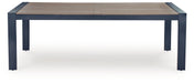 Easy-breezy beauty, made to withstand the elements. This outdoor dining table makes a serene statement with its soothing shade of blue and contrasting wood-look top. Crafted with durable materials for added longevity, it's a smartly stylish addition to your outdoor oasis.